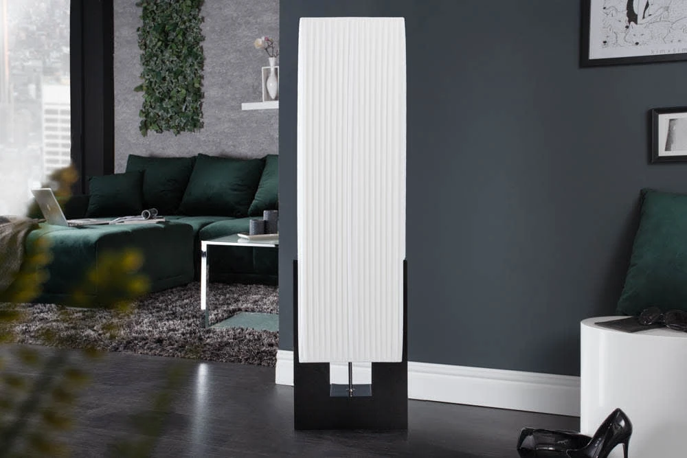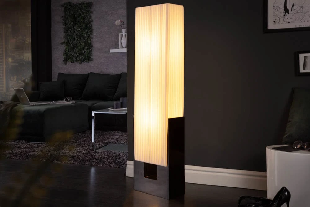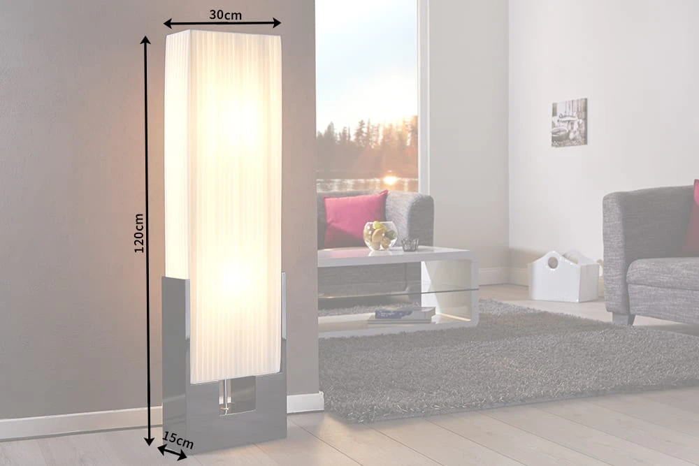 Die formschöne Design Stehlampe LIANA überzeugt durch klare Formen und ihren puristischen Stil. Der Plissee Schirm aus zartem Latextuch lässt sich kinderleicht abwaschen, so lässt sich Staub und sonstiger Schmutz einfach entfernen. Zudem strahlt die Lampe ein weiches Licht aus, was diese Stehlampe zu einem gemütlichen Leuchtmittel für Ihr Zuhause werden lässt.